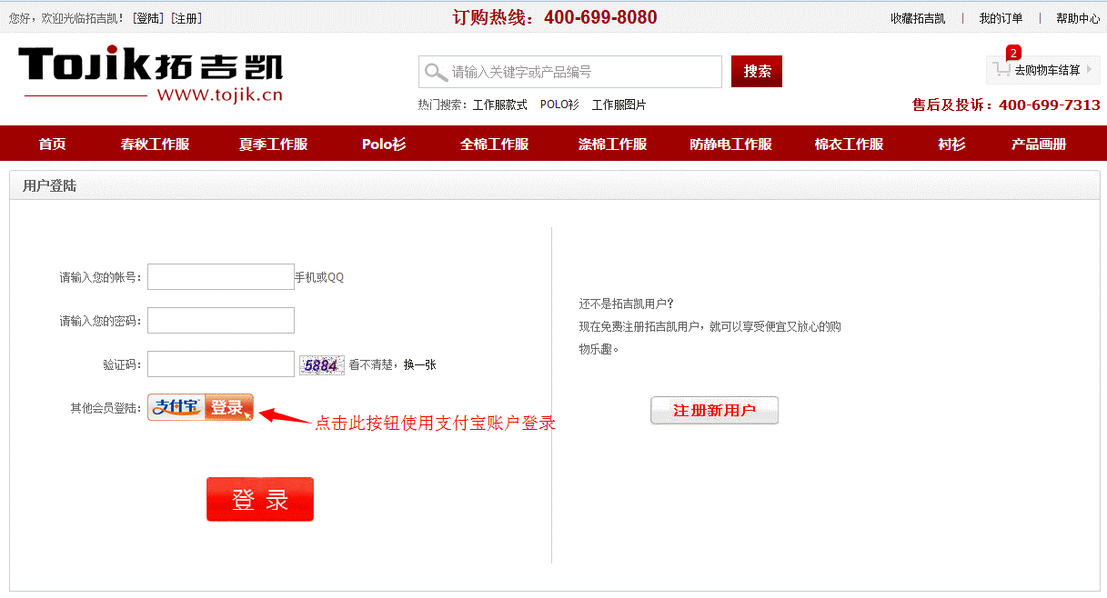 進入拓吉凱首頁,點擊頁面頂部登陸鏈接,進入到拓吉凱會員登錄頁面。